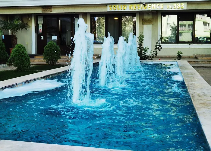 The 37 m^2 Fountain View Appartment Solid Residence Mamaia is located about 10 minutes' drive from Dolphinarium and around 20 minutes' walk from Ponton Mamaia. Situated within a short walking distance of Mega Image, this 1-bedroom apartment includes an aqua park, a sundeck, and water slides.